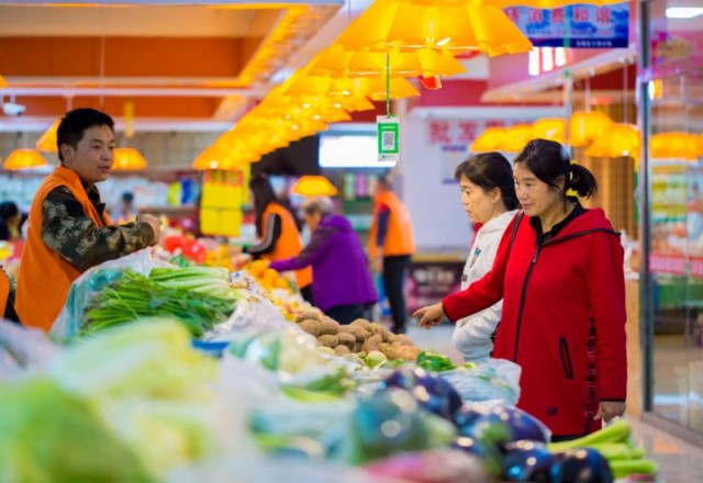 10月18日,呼和浩特市市民正在選購新鮮果蔬。10月16日,呼和浩特市玉泉區(qū)通達(dá)綜合農(nóng)貿(mào)便民市場開業(yè),該市場經(jīng)營面積近3000平方米,設(shè)有蔬菜區(qū)、牛羊肉區(qū)、調(diào)料區(qū)、主食區(qū)、水果區(qū)、水產(chǎn)區(qū)、面點區(qū)等,還專門設(shè)有快餐區(qū),共127個攤位、70家商戶。市場采用超市的經(jīng)營方式,為老百姓打造安全舒適、環(huán)境優(yōu)美的購物環(huán)境。