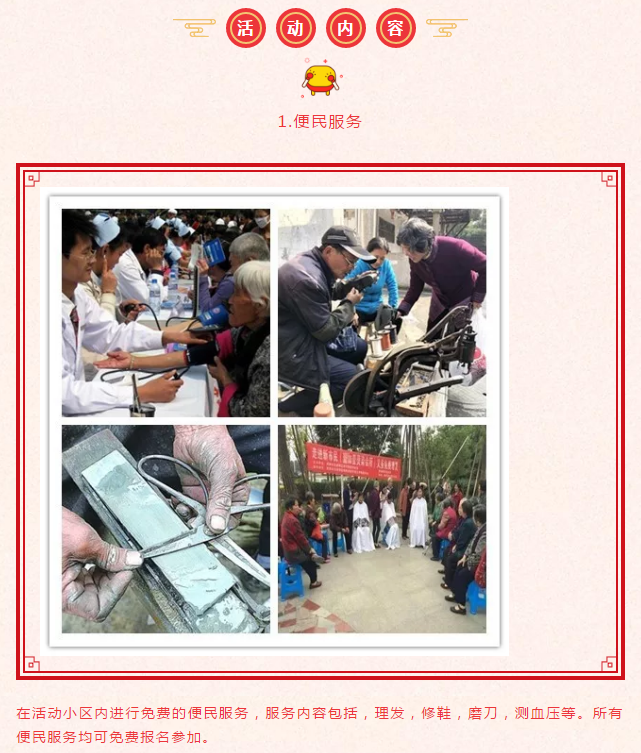 1.周日上午10點(diǎn)開(kāi)始所有的便民服務(wù)